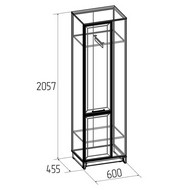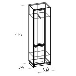 Модуль оснащен двумя широкими полками и евроштангой для вещей на плечиках.