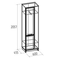 Модуль оснащен двумя широкими полками и евроштангой для вещей на плечиках.