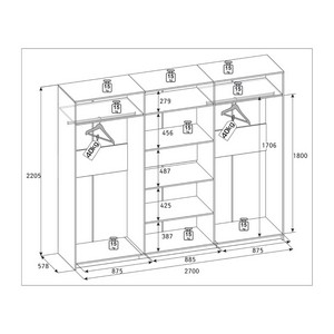 Размеры (см): ширина - 270, высота - 220,5, глубина - 59,8.