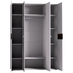 Шкаф с распашными дверцами оснащен стационарной штангой и полками.