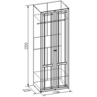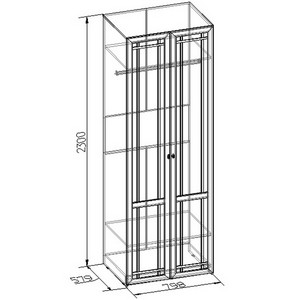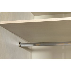 Шкаф оснащен штангой для вешалок и двумя полками.