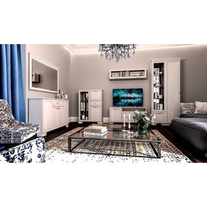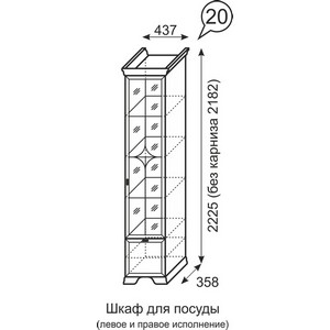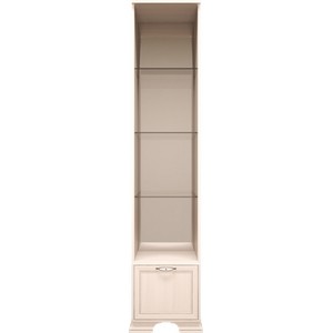 Шкаф оснащен отделением-витриной с стеклянной дверью и маленьким отделением с глухой дверью.