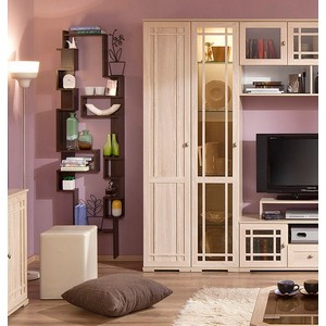 Материалы: ЛДСП 16 мм, профиль МДФ, ХДФО, стекло 4 и 6 мм, кромка ПВХ 0,45 мм, галогеновый светильник.