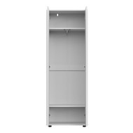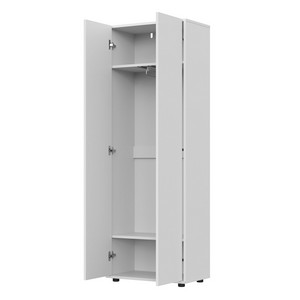 Верхняя и нижняя части шкафа оборудованы практичными полками для компактного хранения одежды, аксессуаров или обуви.