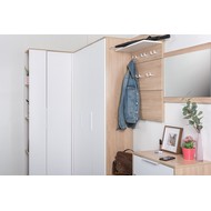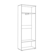 Двухстворчатый шкаф для одежды Куба 13.136 состоит из антресольной полки для головных уборов, центрального отсека с выдвижной штангой для одежды и нижней полки для обуви.