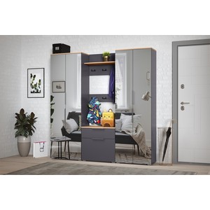 Шкаф двухстворчатый для одежды Октава 13.338 с зеркалом (серый графит, дуб золотой)