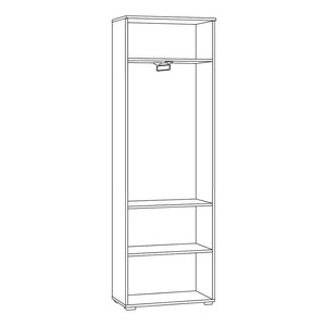 Двустворчатый распашной шкаф для одежды Октава 13.338 оборудован тремя полками и выдвижной штангой.