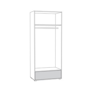 Двухстворчатый шкаф для одежды Вуди 13.138 оснащен выдвижным ящиком, полкой и отсеком с продольной штангой.