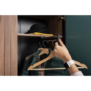 Шкаф оснащен выдвижной штангой для одежды.