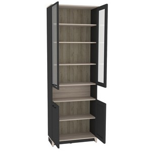 Рамочные фасады выглядят изысканно в сочетании со стеклом и металлическими черными ручками.