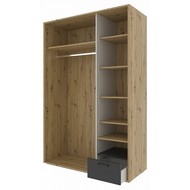 Компоненты, входящие в комплект: 1 штанга для вешалок, 1 ящик, 3 дверцы, 7 полок.