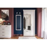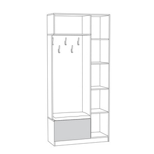 Открытая вешалка оснащена антресольной полкой для головных уборов и распашным отделением для обуви.