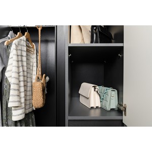 Шкаф комбинированный Сидней 13.18 оборудован просторными полками, ящиком и штангой для вешалок.