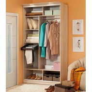 Дополнительно к шкафу можно приобрести карниз с подсветкой, брючницу и стеллаж.