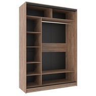 Внутреннее наполнение шкафа состоит из стеллажа для белья, четырех больших ниш внизу и вверху, а также стационарной штанги.