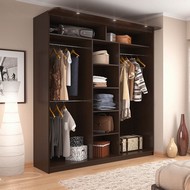 Шкаф оснащен тремя стационарными штангами для вешалок, двумя антресольными нишами и четырьмя полками.