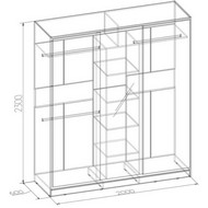 Размеры: ширина - 200 см, глубина - 59,5 см, высота - 229,5 см.