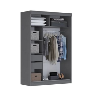 Вместительное наполнение: полки, хромированная штанга для вешалок и два выдвижных ящика.