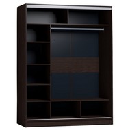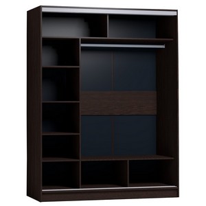 Внутреннее наполнение шкафа состоит из стеллажа для белья, четырех больших ниш внизу и вверху, а также стационарной штанги.