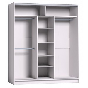 Внутреннее наполнение шкафа состоит из полок для белья и трех стационарных штанг.