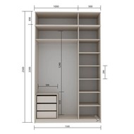 Комплектуется металлической штангой, полками и выдвижными ящиками.