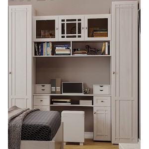 Шкаф оснащён 3 отделениями с распашными дверями и 2 открытыми нишами.