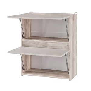 Навесной шкаф для кухни Берген Лайт 6в2 шириной 60 см с двумя горизонтальными откидными фасадами и полками.