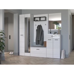 Комплектация: 1 выдвижная штанга для вешалок, 1 дверца, 2 полки.