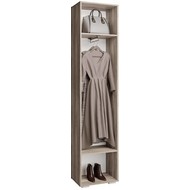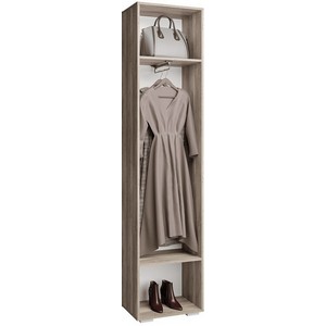 Оснащен выдвижной штангой для вешалок и двумя полками.