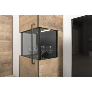 Шкаф-пенал Трувор 13.205 оборудован полками и витриной с тонированным стеклом.