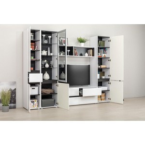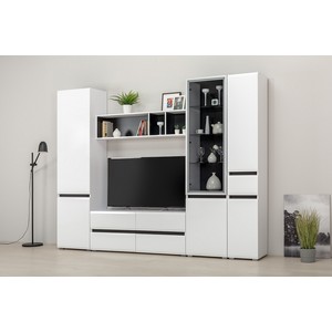 Шкаф-пенал Сидней 13.200 (белый премиум, черный 0190 PE, белый глянец)