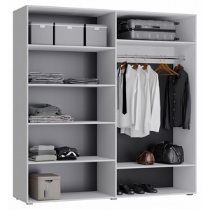 Компоненты, входящие в комплект: 1 штанга для вешалок, 4 дверцы, 6 полок.