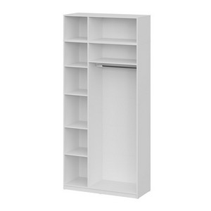 Просторное отделение со штангой для размещения одежды на плечиках, закрытая секция с пятью полками предназначена для хранения вещей.