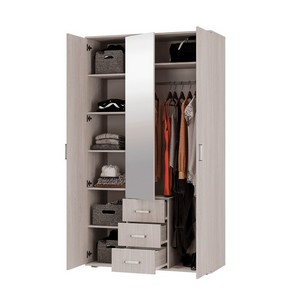 Зеркало на центральном фасаде визуально облегчает конструкцию шкафа и освежает окружающую обстановку.