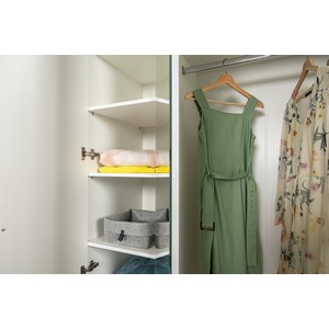 Шкаф для одежды Остин 13.336.03 состоит из двух отделений - с полками для белья и со штангой для вешалок.