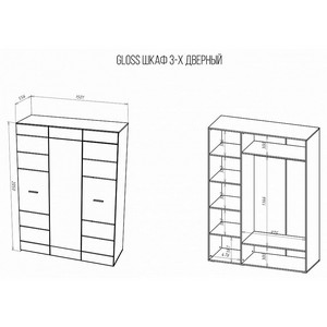 Комплектация: 1 штанга для вешалок, 3 дверцы, 6 полок.