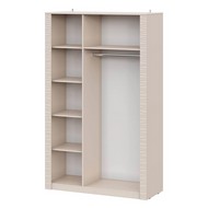 Внутреннее устройство включает полки для сложенных вещей и стационарную штангу для плечиков, обеспечивая удобный доступ ко всей одежде.