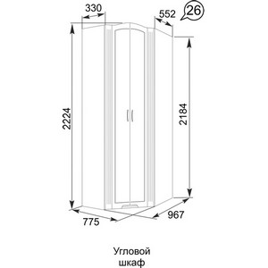 Размеры: ширина - 77,5 см, глубина - 96,7 см, высота - 222,4 см.