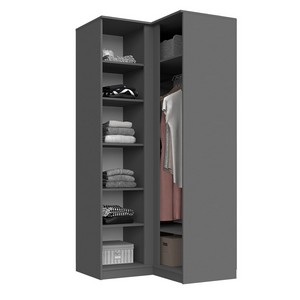 Шкаф Челси угловой прямой в современной отделке поможет рационально использовать пространство в комнате. Внутреннее наполнение со штангой и многочисленными полками.