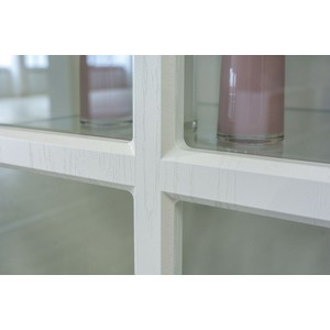 Шкаф-витрина Ливерпуль выполнена в белом цвете имитирующим крашеный массив.