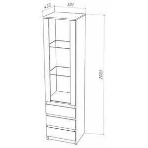 Компоненты, входящие в комплект: 1 дверца, 3 полки, 3 ящика.