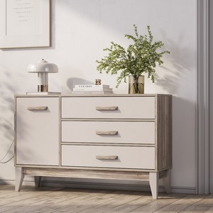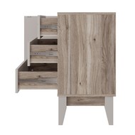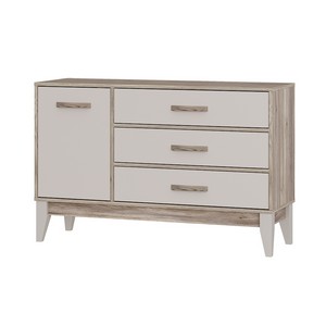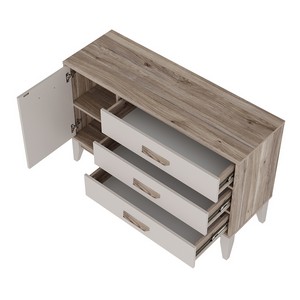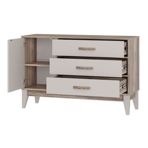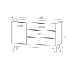 Комод КМ-12 Скандика имеет 3 выдвижных ящика с плавным механизмом открытия и полкой за фасадом.