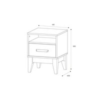 Тумба прикроватная Скандика имеет открытую нишу для мелочей и 1 выкатной ящик.