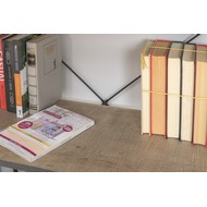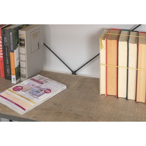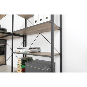 Вместо задней стенки устойчивость стеллажа обеспечивает прочная металлическая крестовина.