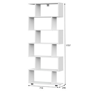 Он состоит из шести открытых полок, расположенных друг над другом в шахматном порядке с небольшим смещением в сторону.
