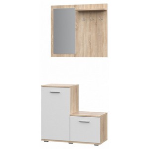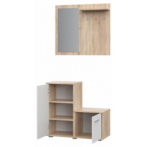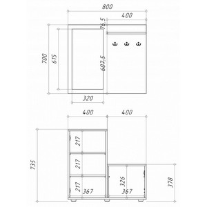 Компоненты, входящие в комплект: 1 вешалка настенная - 800x166x700 (мм), 1 тумбочка - 400x340x378 (мм), 1 тумбочка - 400x340x735 (мм).