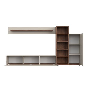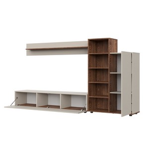Современный мебельный гарнитур, создающий элегантную и функциональную зону хранения в гостиной.