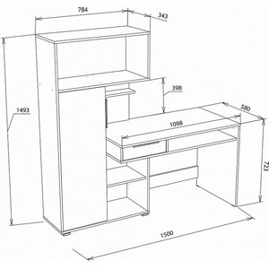 Компоненты, входящие в комплект: стеллаж: 1 дверца, 2 полки 1 полка, 1 ящик.
