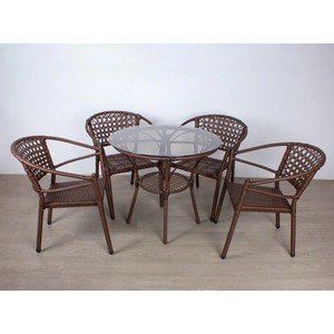 Материал изделия: каркас - металл с порошковым покрытием, плетение - искусственный ротанг, столешница - закаленное стекло.