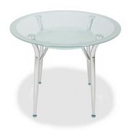 Ножки выполнены из хромированного металла, столешница из закаленного и устойчивого к царапинам стекла с бежевой окантовкой.